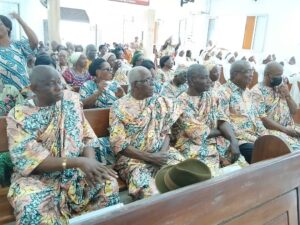 C’est dans la ferveur, l’adoration, la louange, etc. le dimanche 3 août 2025, dans une église de la paroisse Saint François Xavier, haute en couleurs et en sons, que la Sœur Ernestine Nanan a été honorée, avec la fusion des chorales Chœur des Anges et Notre Dame de l’Espérance. Un jour mémorable pour la Sœur Ernestine Nanan tant la messe a été très bien menée et organisée. Après la lecture du texte principal de l’évangile du jour, la Sœur Ernestine Nanan a fait son entrée dans l’église en compagnie de deux de ses consœurs, en entonnant en langue atchan, la langue locale, une chanson intitulée « Comment rendre au Seigneur tous les biens qu’il m’a faits ».