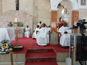 Elle a reçu énormément de don en nature comme en espèces. Le représentant du curé de la paroisse Saint François Xavier, Giles Dogoua César, le vicaire Christian a tout simplement remercié toutes les personnes qui sont venues à la cérémonie et qui ont contribué à l’organisation de la messe.