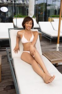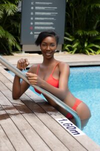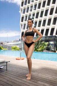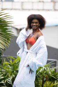 Les 30 Miss Côte d’Ivoire en maillot de bain, au vert, dans un hôtel, d’Abidjan-Marcory, prête pour la finale, du samedi 28 juin 2025. Finale prévue au parc des expositions, à Port-Bouët.