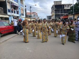 Dès les premières heures, le village avait revêtu ses habits de fête. Les membres de la génération, parés d’un uniforme en pagne confectionné pour l’occasion, ont offert un spectacle haut en couleur. Les femmes, rayonnantes, ont agrémenté leur tenue de parures en or, de chaînes et de bracelets scintillants. Les hommes, badigeonnés de kaolin, arboraient un pagne rouge, symbole de bravoure et de puissance en pays Atchan.