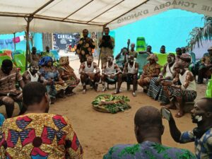 Yamba Joseph a expliqué que la formation est basée sur des thèmes à partir des objets qui sont dans le paniers que les paroliers ont transportés avant le début de la cérémonie officielle de sortie. Il a pris le cas de l’escargot ou la graine. Durant la formation l’historique de ces produits va être faite ainsi que leurs fonctions sociales dans la société Atchan. Et comment les paroliers peuvent s’en servir dans leurs prestations publiques, etc.